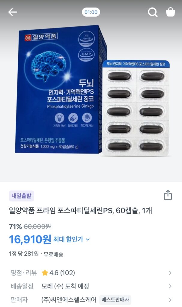 - 🧠 일양약품 프라임 포스파티딜세린PS, 60캡슐, 1개