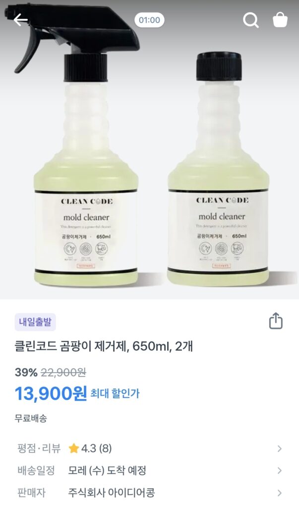 2. 🧴 클린코드 곰팡이 제거제, 650ml, 2개